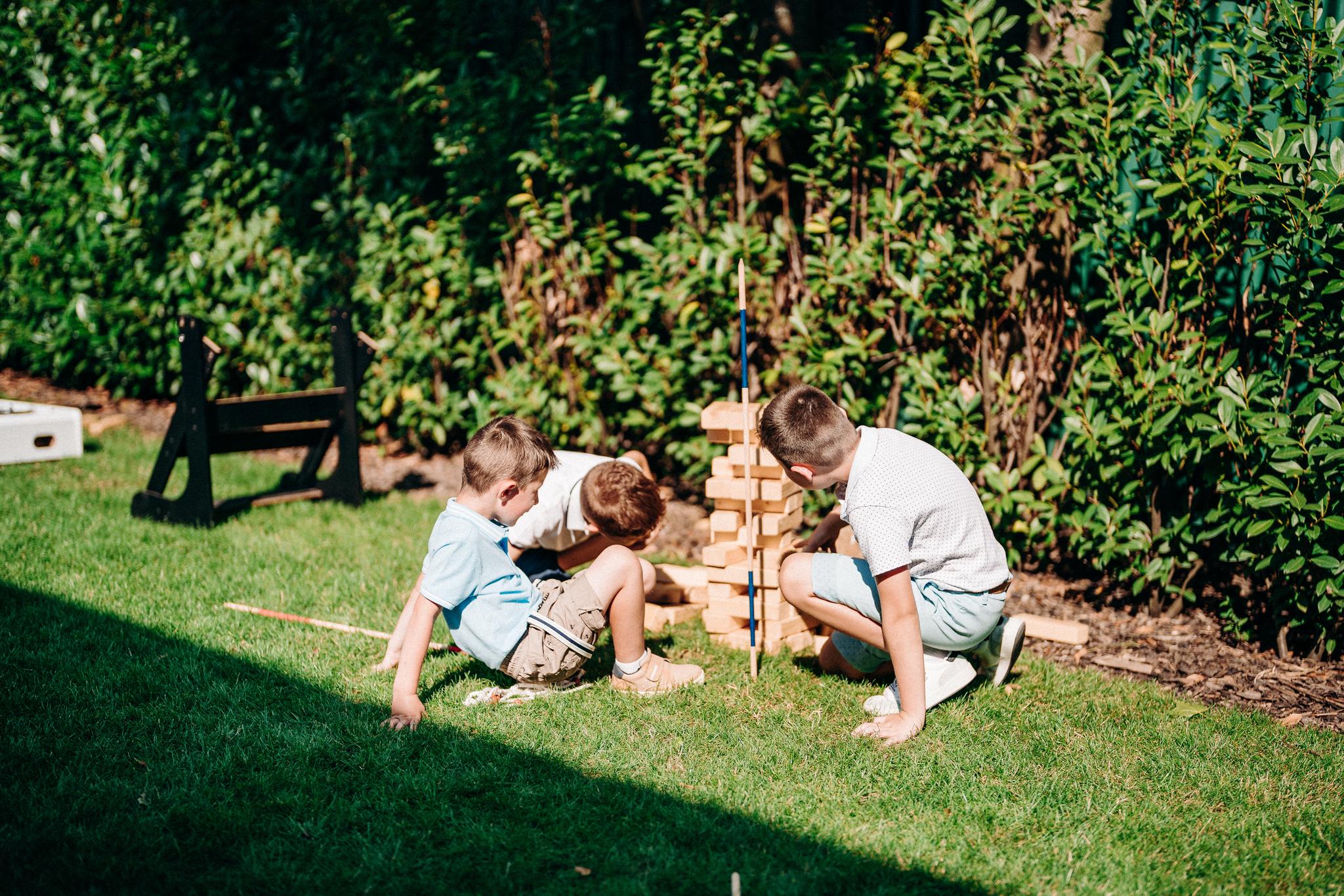 Hrozně nás baví i Maxi Jenga – někdy se z ní stane zenová soutěž o nejtišší pohyb dne, jindy se zvrhne v davovou psychózu, kdy se celá svatba snaží uhádnout, kdy to spadne. A víte co? Ten moment, kdy to spadne, je často tím nejhlasitějším smíchem celého dne.😃