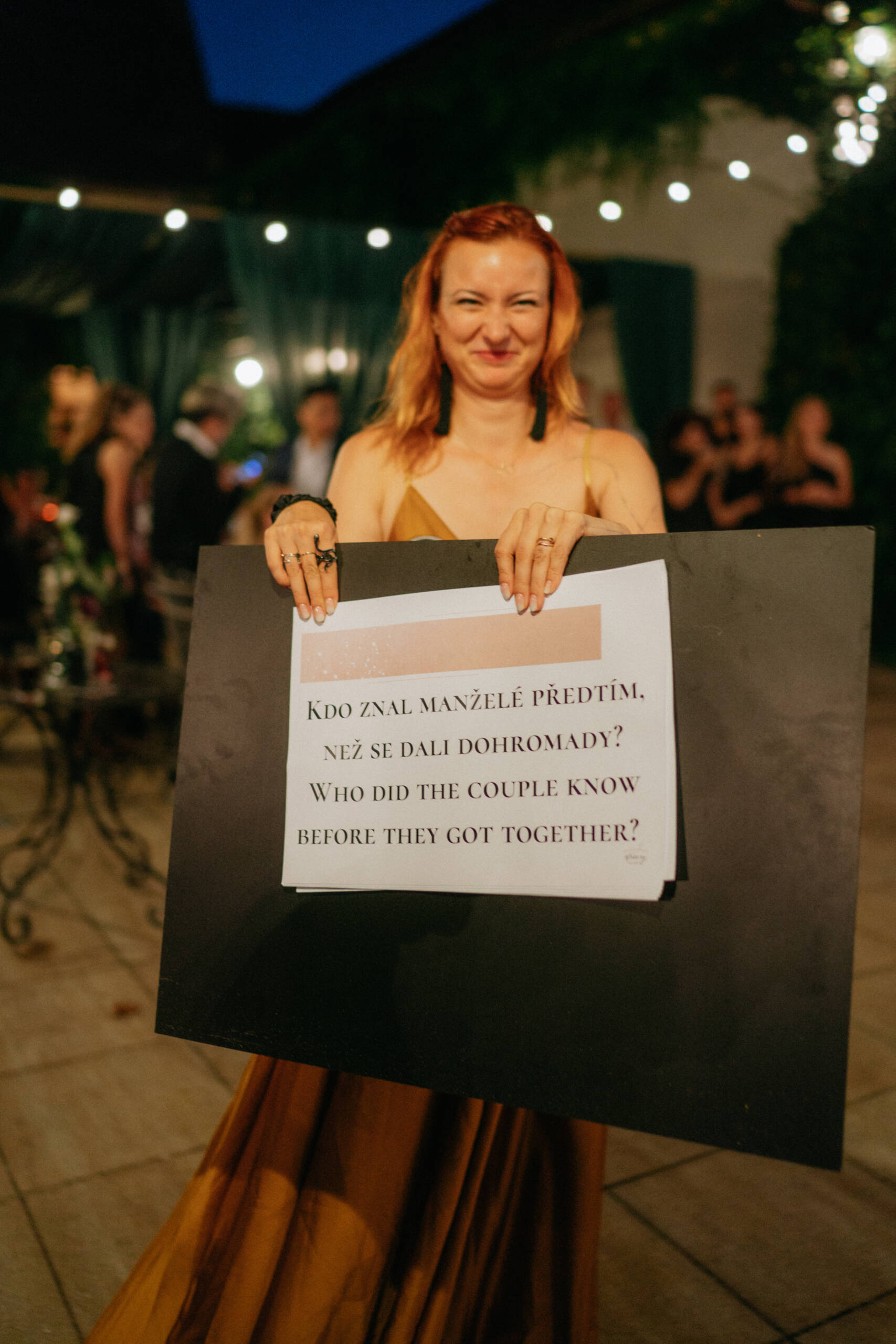 „Ty naše svatební hry, to je vždycky kapitola sama pro sebe. Miluju, jak si s tím dáváme práci – vymyslíme koncept, ladíme ho podle zájmů novomanželů a pak tomu dáme ještě korunu tou tiskovinou. Ať už je to vyřazovací pavouk jak z fotbalového turnaje, nebo třeba plakát na styl olympiády, kde se vítá novomanželský tým ve stylu: ‘Připlouvají čerstvě sezdaní plavci!‘ 😃. Vždycky je to originální a hlavně neskutečná zábava."
